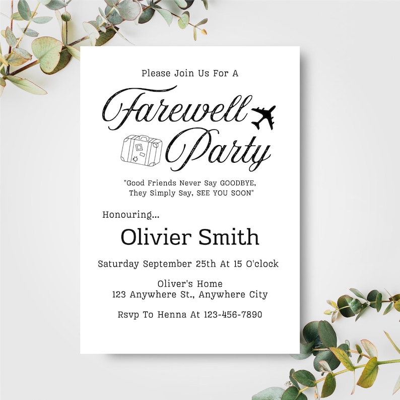 Editable Farewell Party Invitation Printable Going Away Invite Template