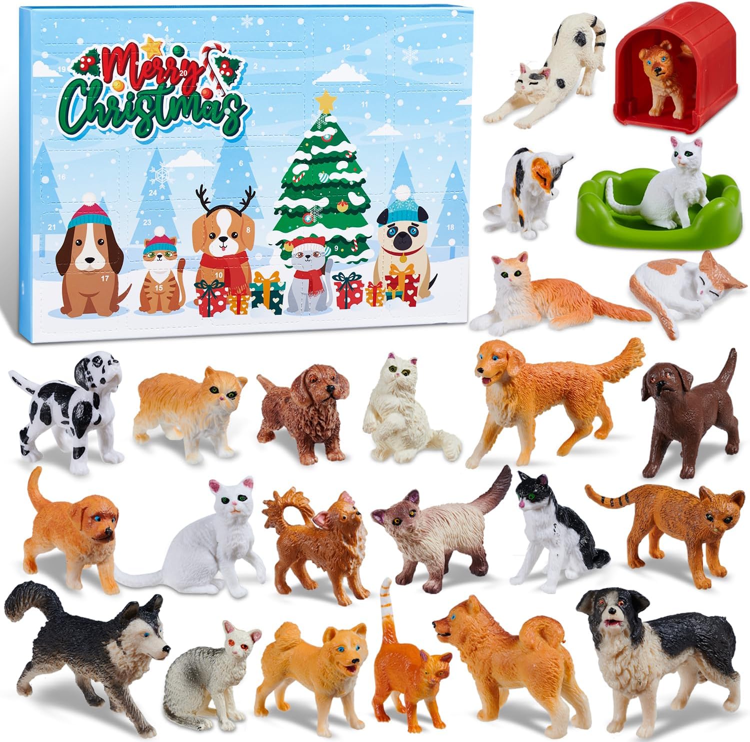 Adventskalender 2024 Kinder Hunde und Katzen Figuren Tierischer