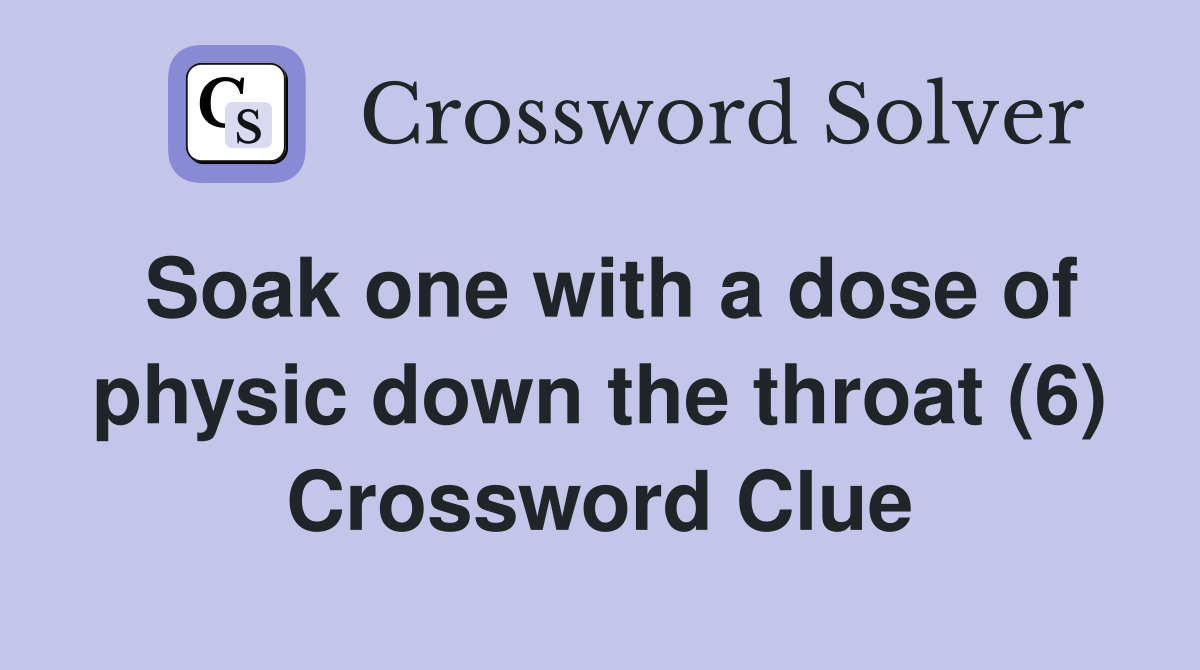 Soak one with a dose of physic down the throat (6) Crossword Clue