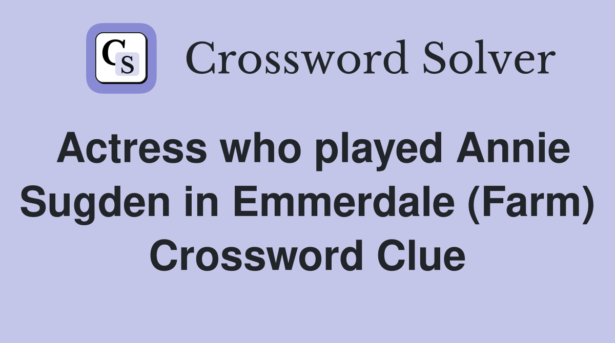 Actress who played Annie Sugden in Emmerdale (Farm) Crossword Clue