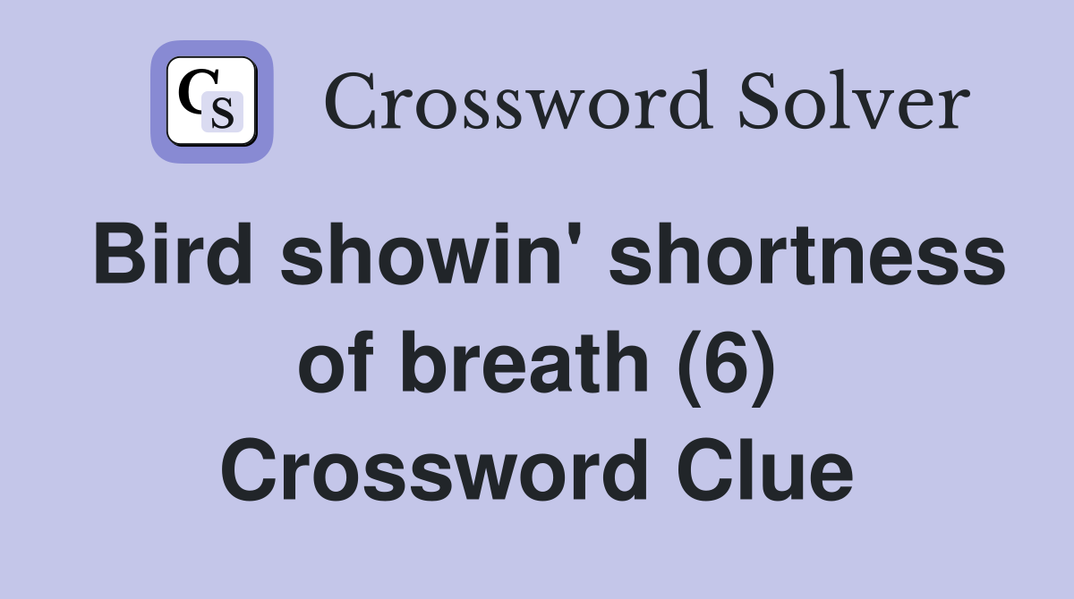 Bird showin #39 shortness of breath (6) Crossword Clue Answers