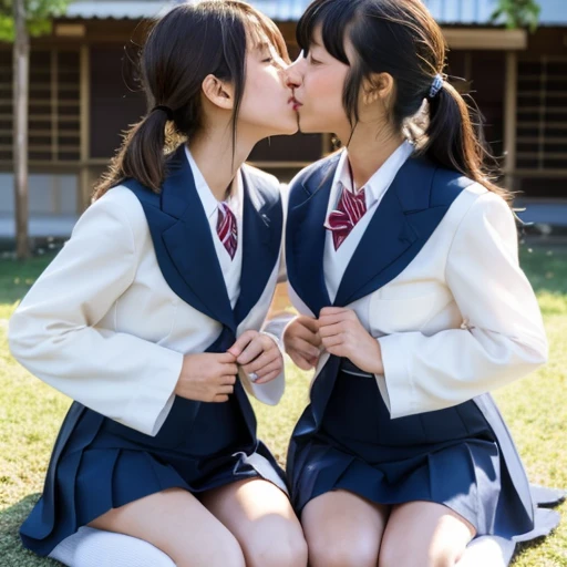 Two Japanese high school girls in revealing clothes kissing SeaArt AI