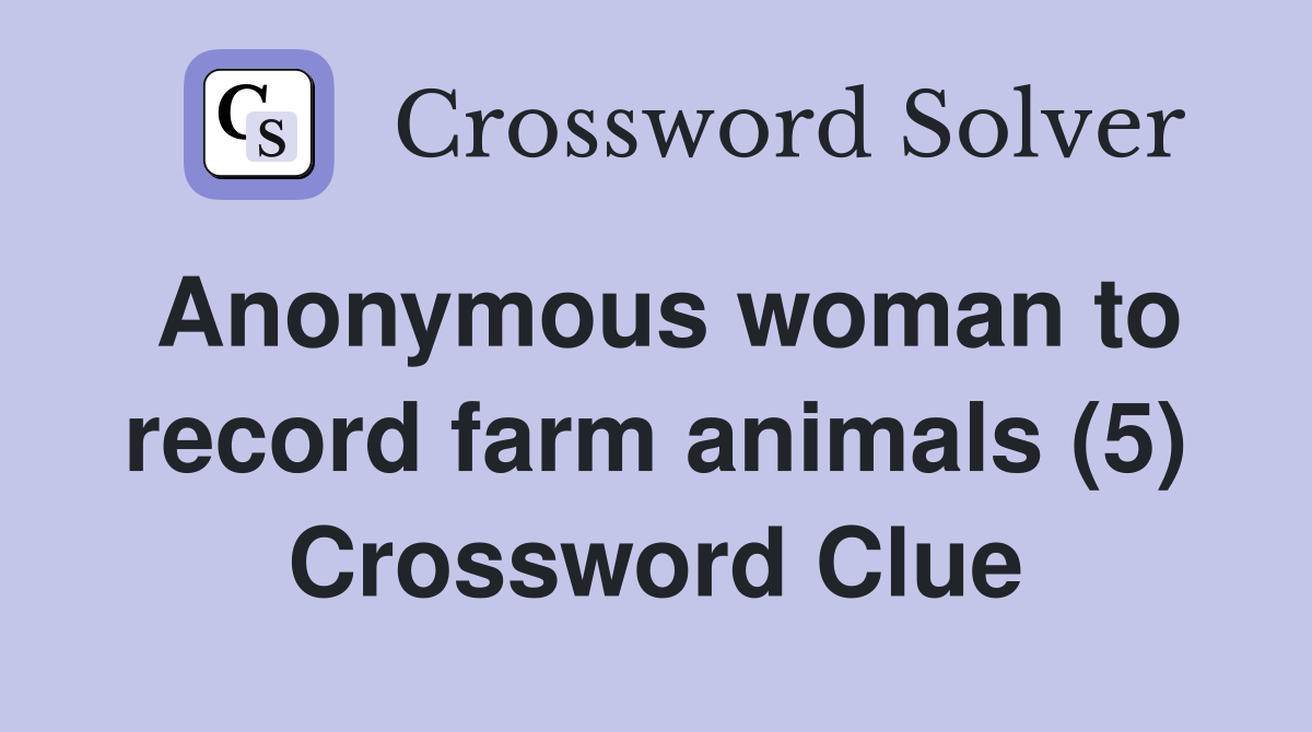 Anonymous woman to record farm animals (5) Crossword Clue Answers