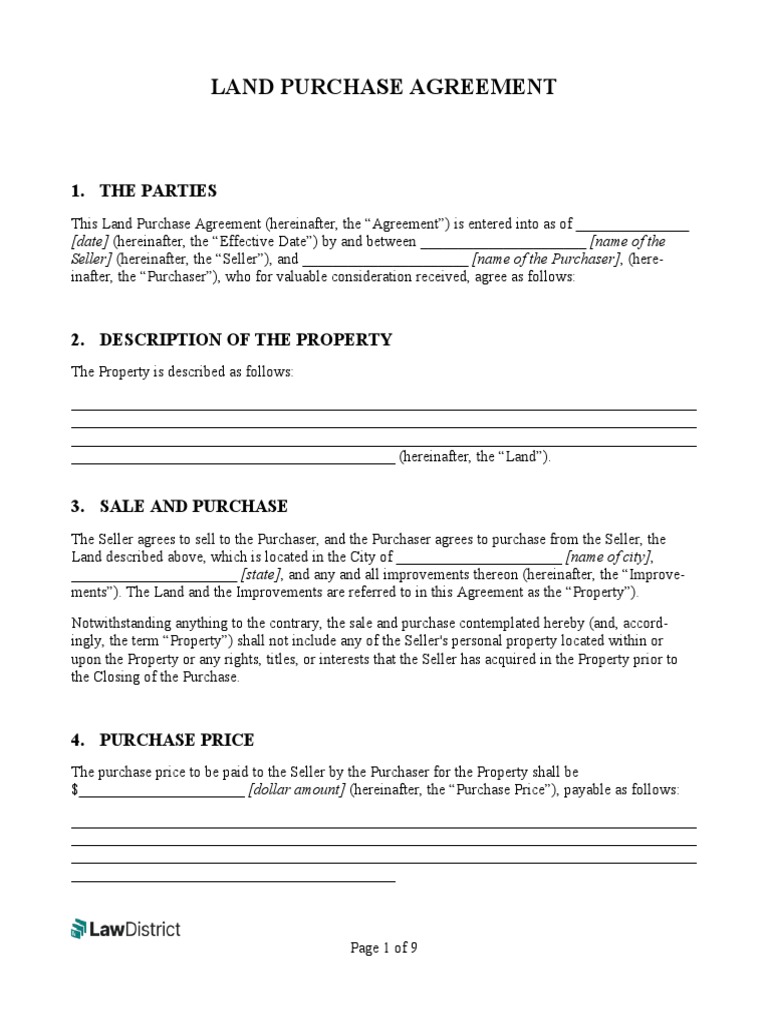Land Purchase Agreement Template PDF