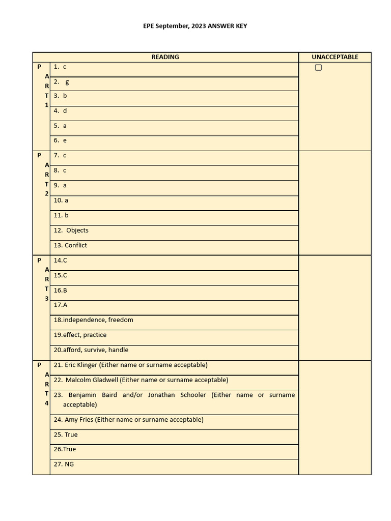 Written Part Answer Key PDF