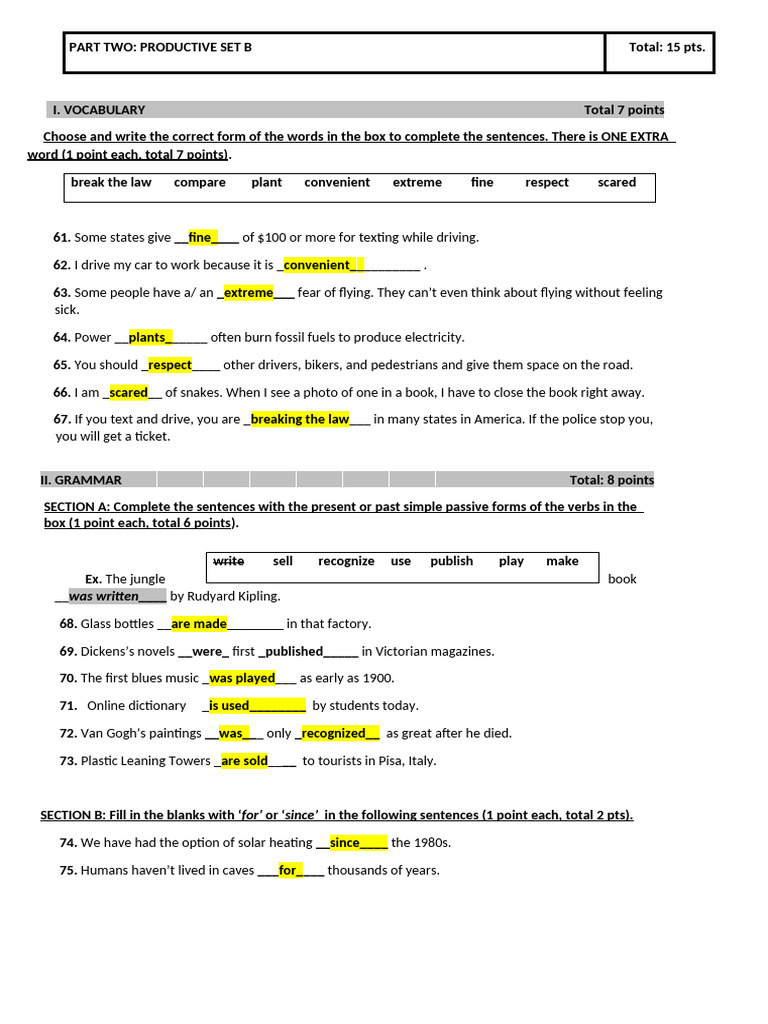 Productive Part Answer Key PDF Linguistics