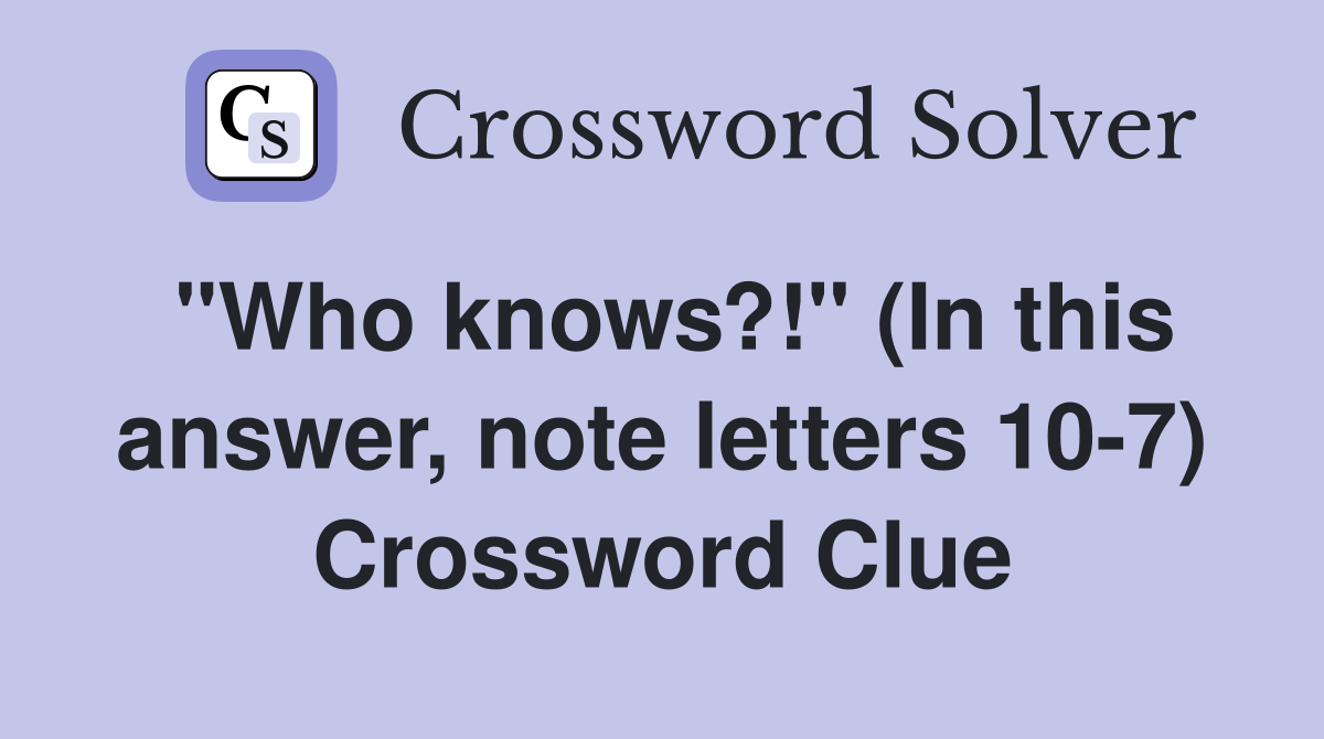 quot Who knows? quot (In this answer note letters 10 7) Crossword Clue