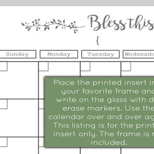 Rustic Farmhouse Dry Erase Calendar Instant Download Printable