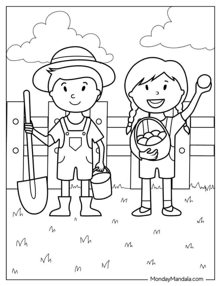 Two Kids Farming Coloring Page Free Printable Coloring Pages for Kids