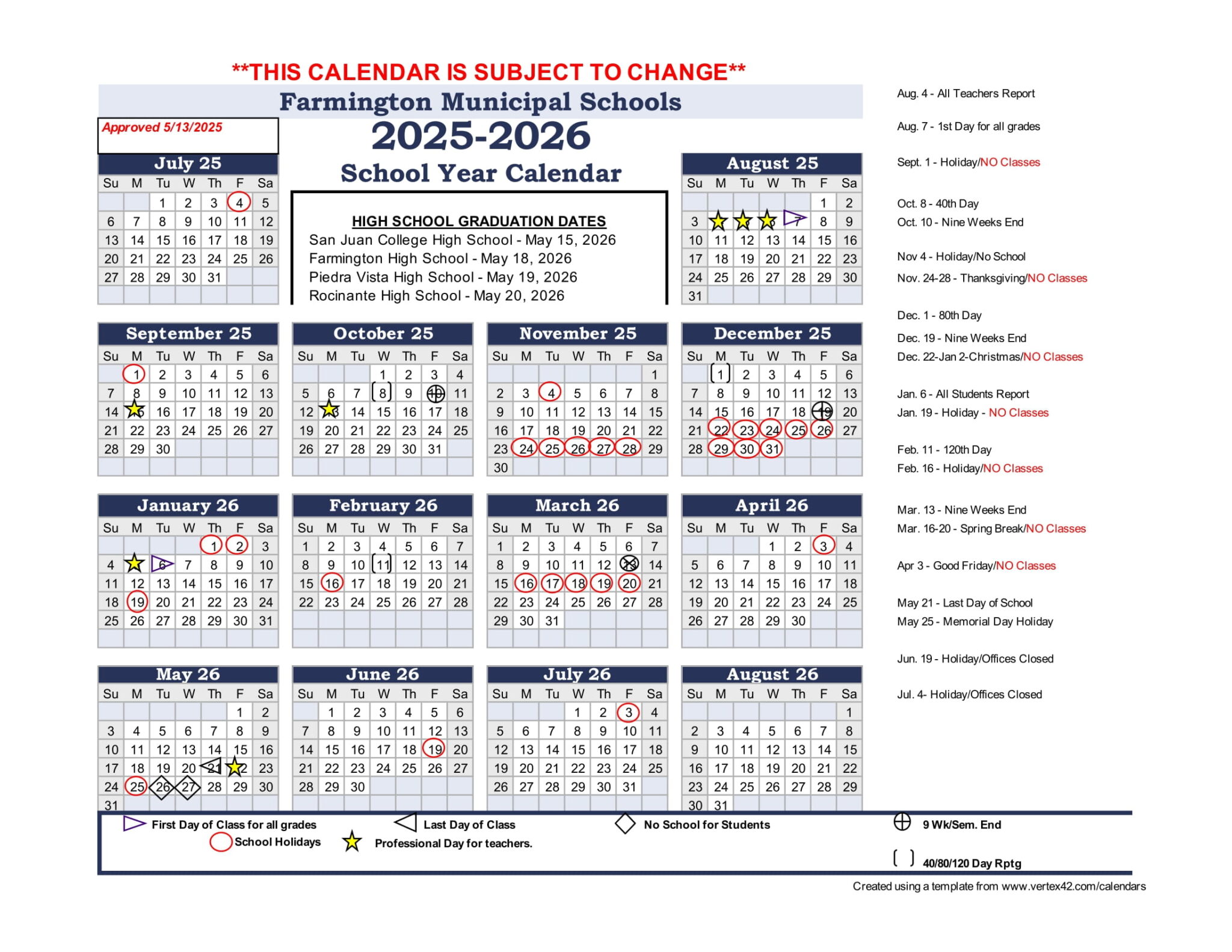 Farmington Municipal Schools NM Calendar 25 26 Revised pdf EduCounty