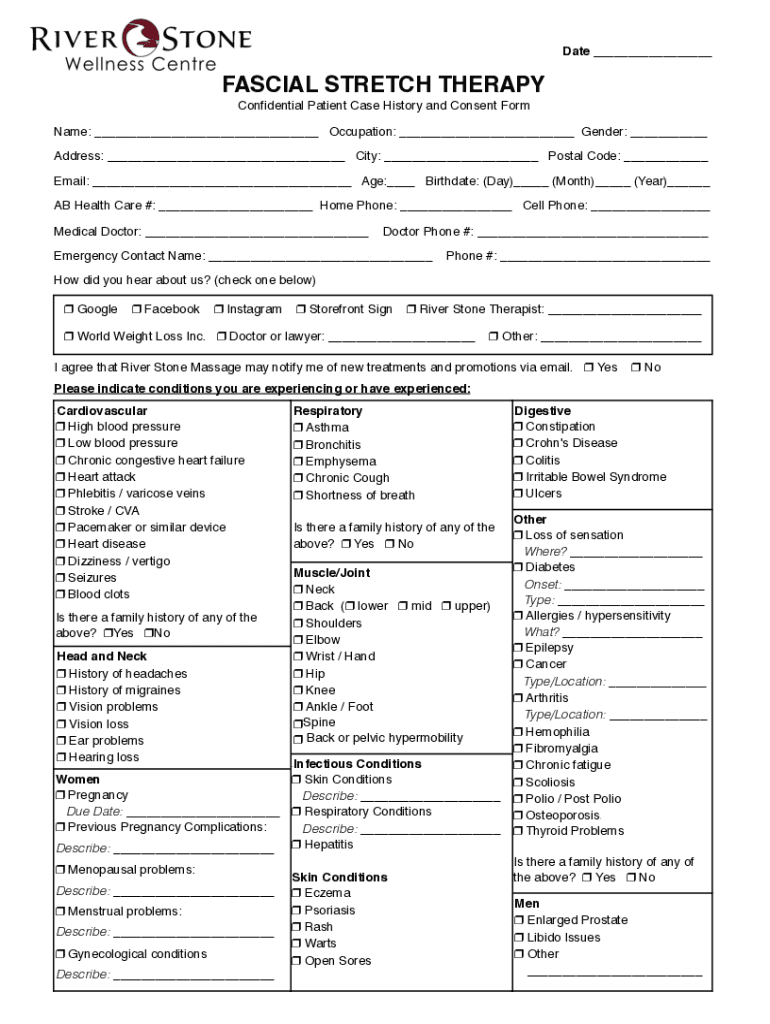 Fillable Online Fascial Stretch Intake Form Fax Email Print pdfFiller