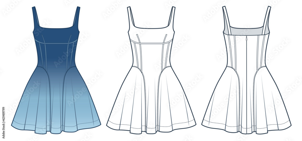Women mini Dress technical fashion Illustration blue design Dress