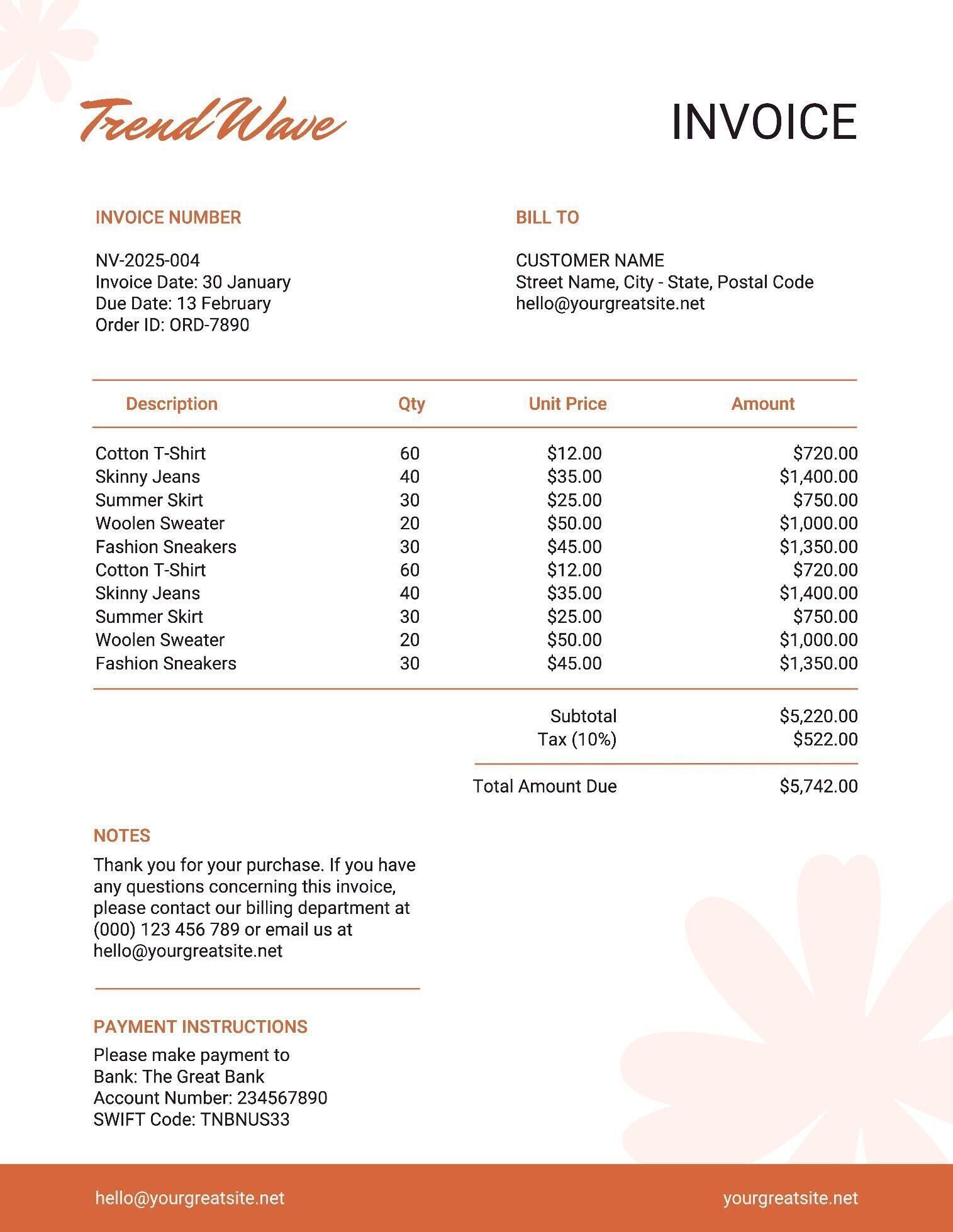 Fashion Invoice Template