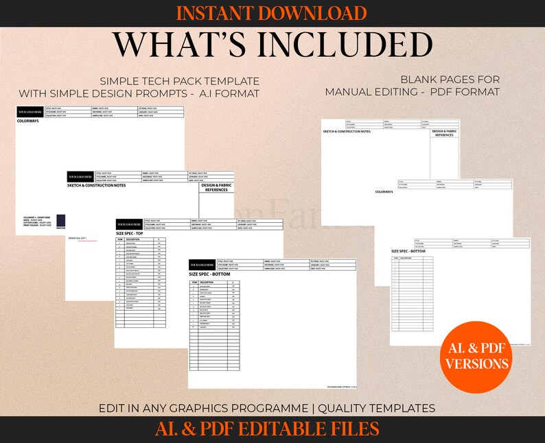 Fashion Tech Pack Template Kit Adobe Illustrator DIY Tech Pack Ai Pdf