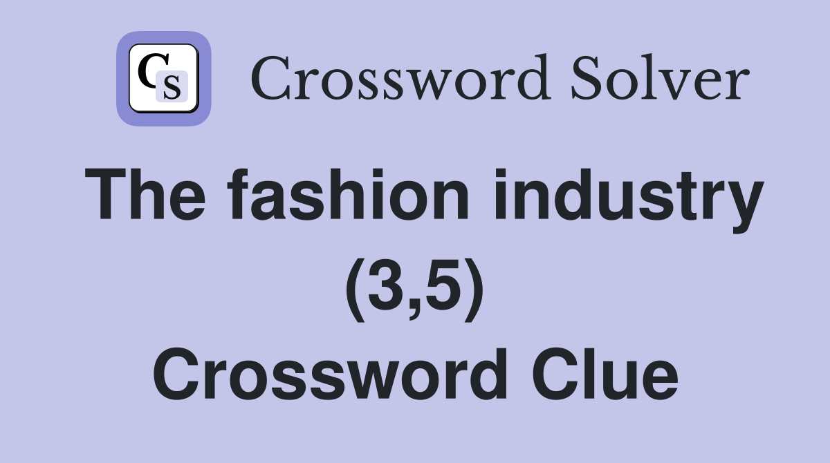 The fashion industry (3 5) Crossword Clue Answers Crossword Solver