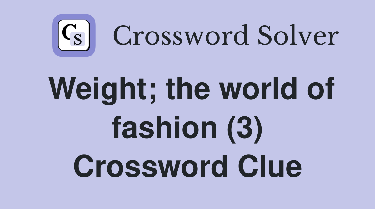 Weight the world of fashion (3) Crossword Clue Answers Crossword