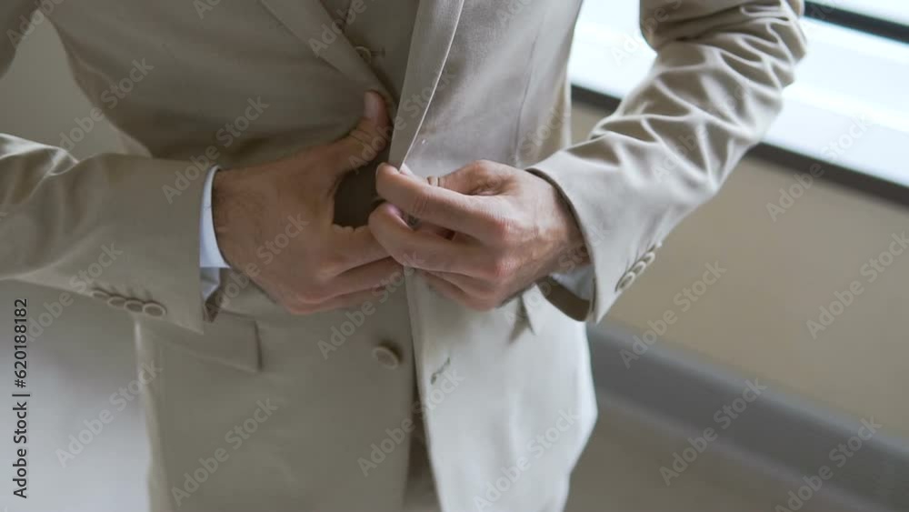 Men S Hands Fasten Buttons on a Suit Jacket Close Up Stock Video