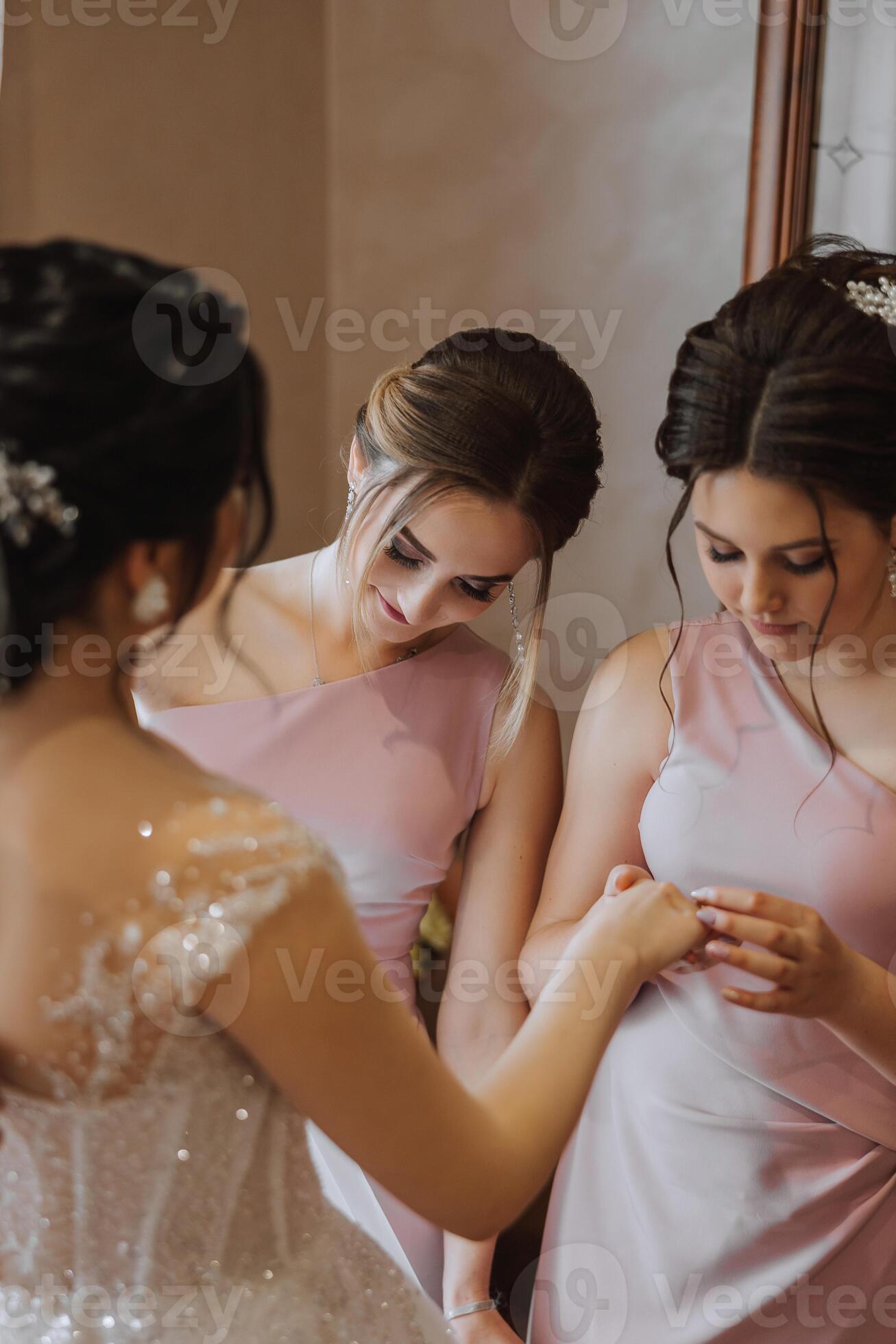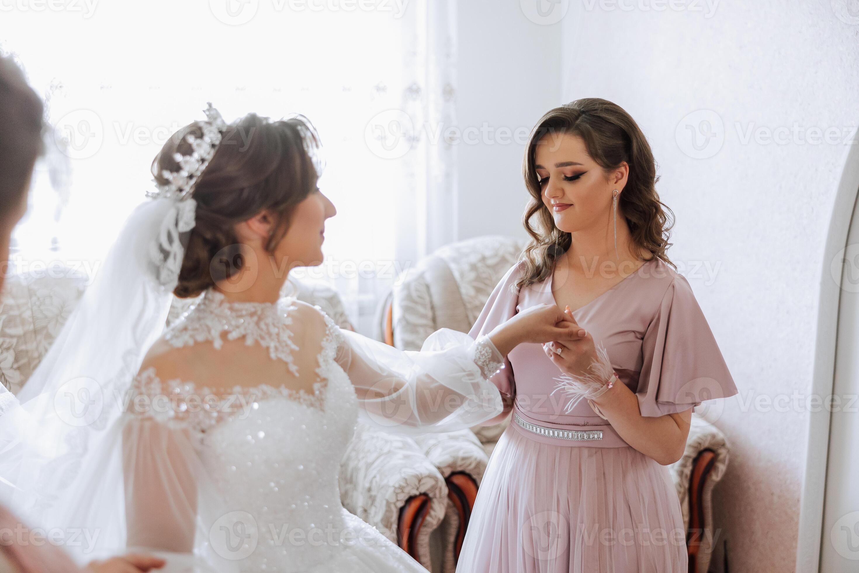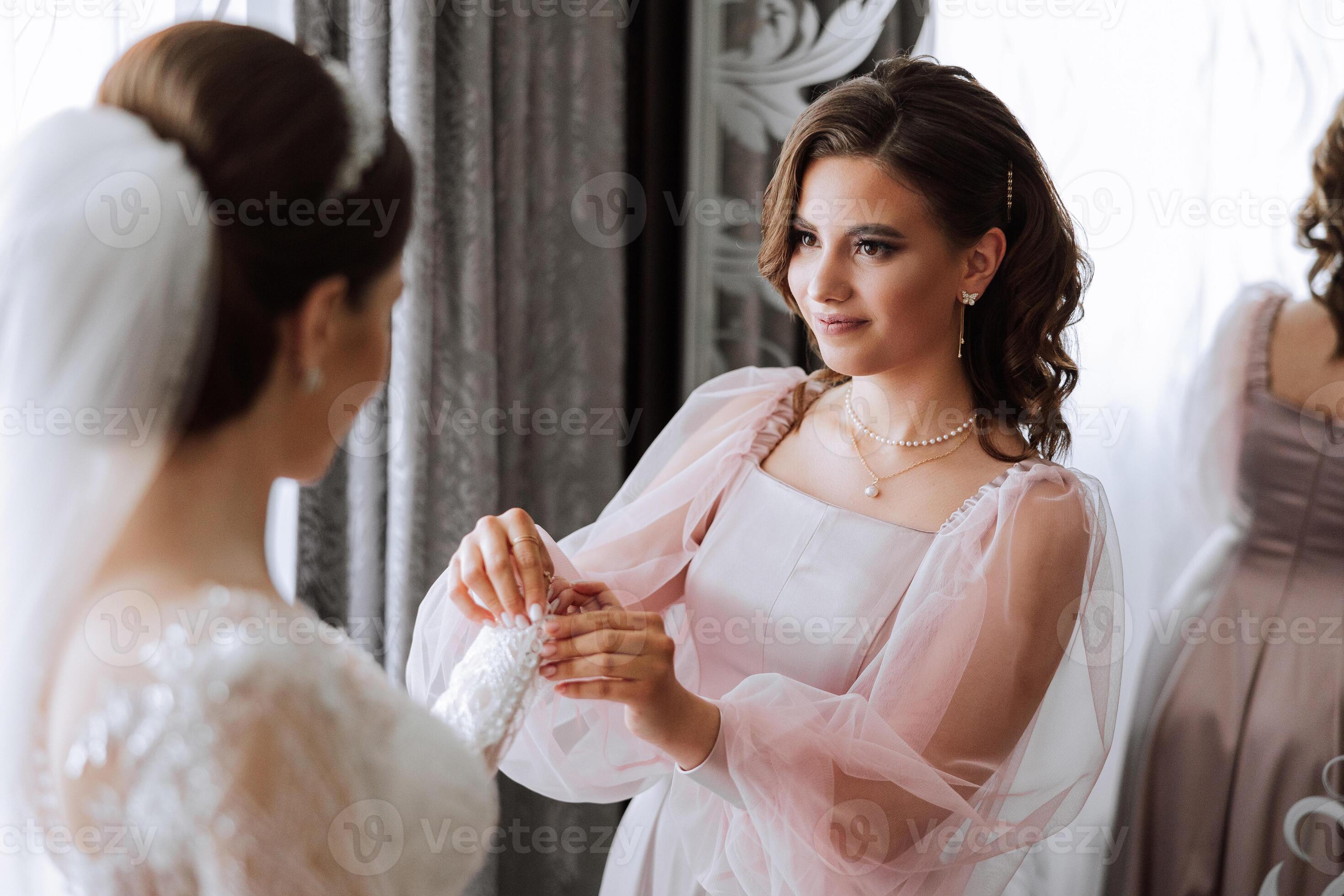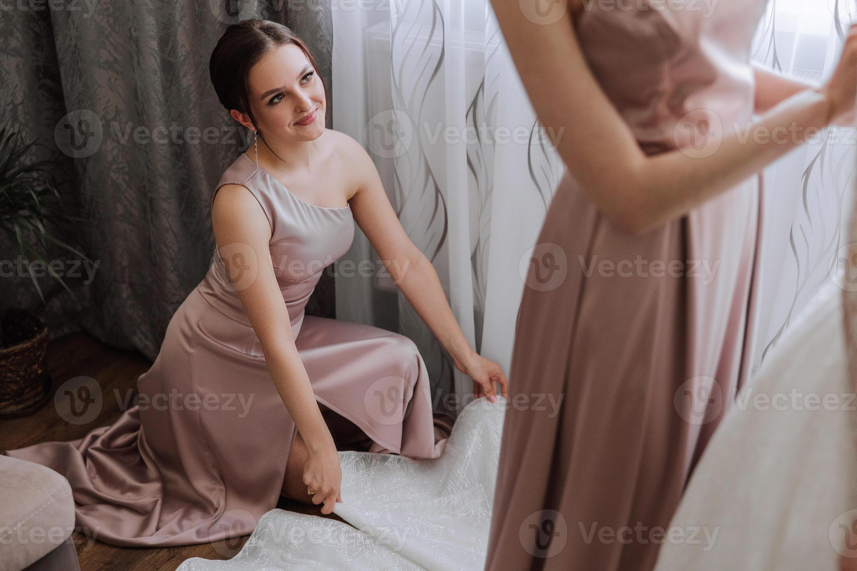 Premium Photo Morning of the bride The brides maid of honor helps the