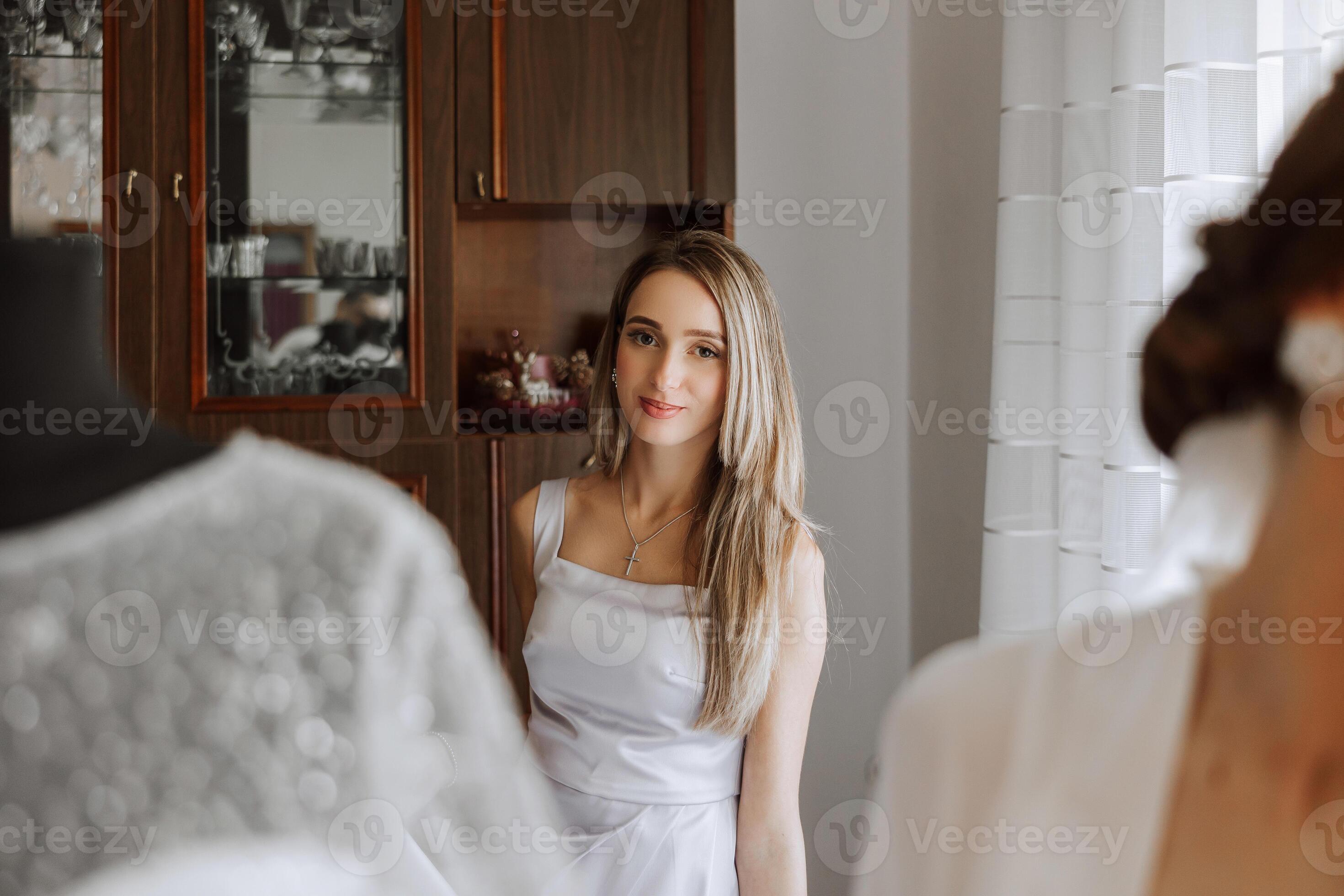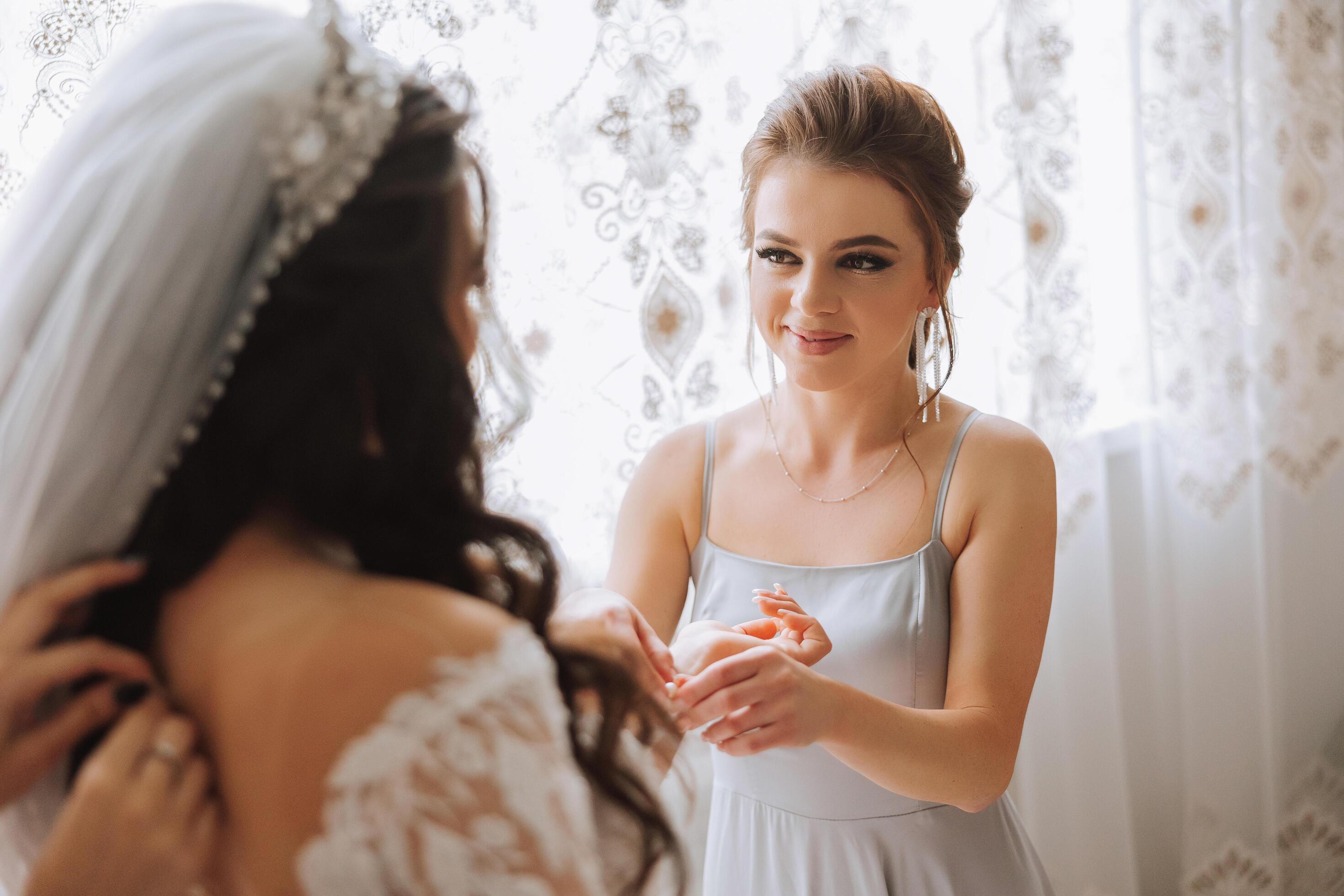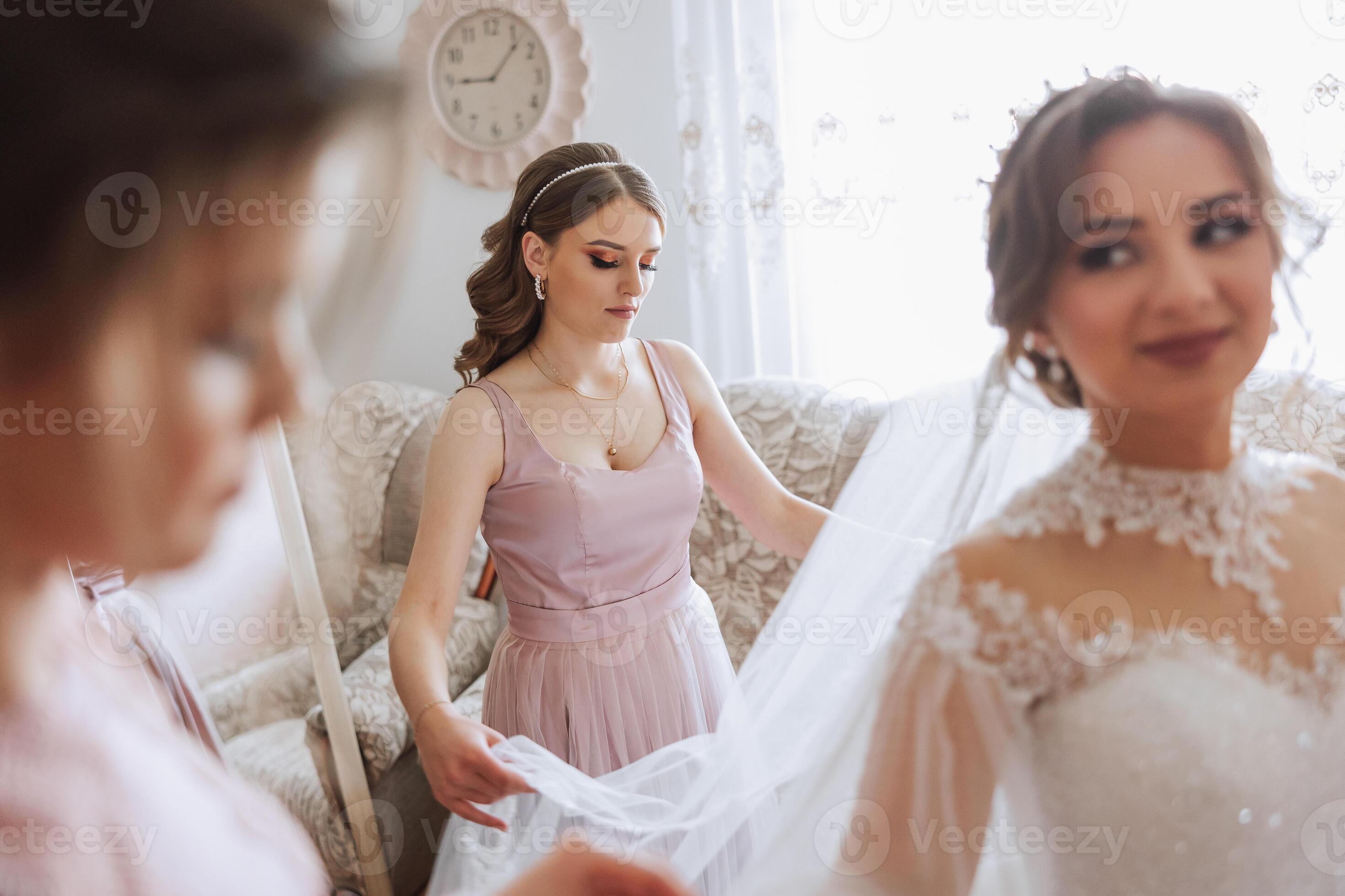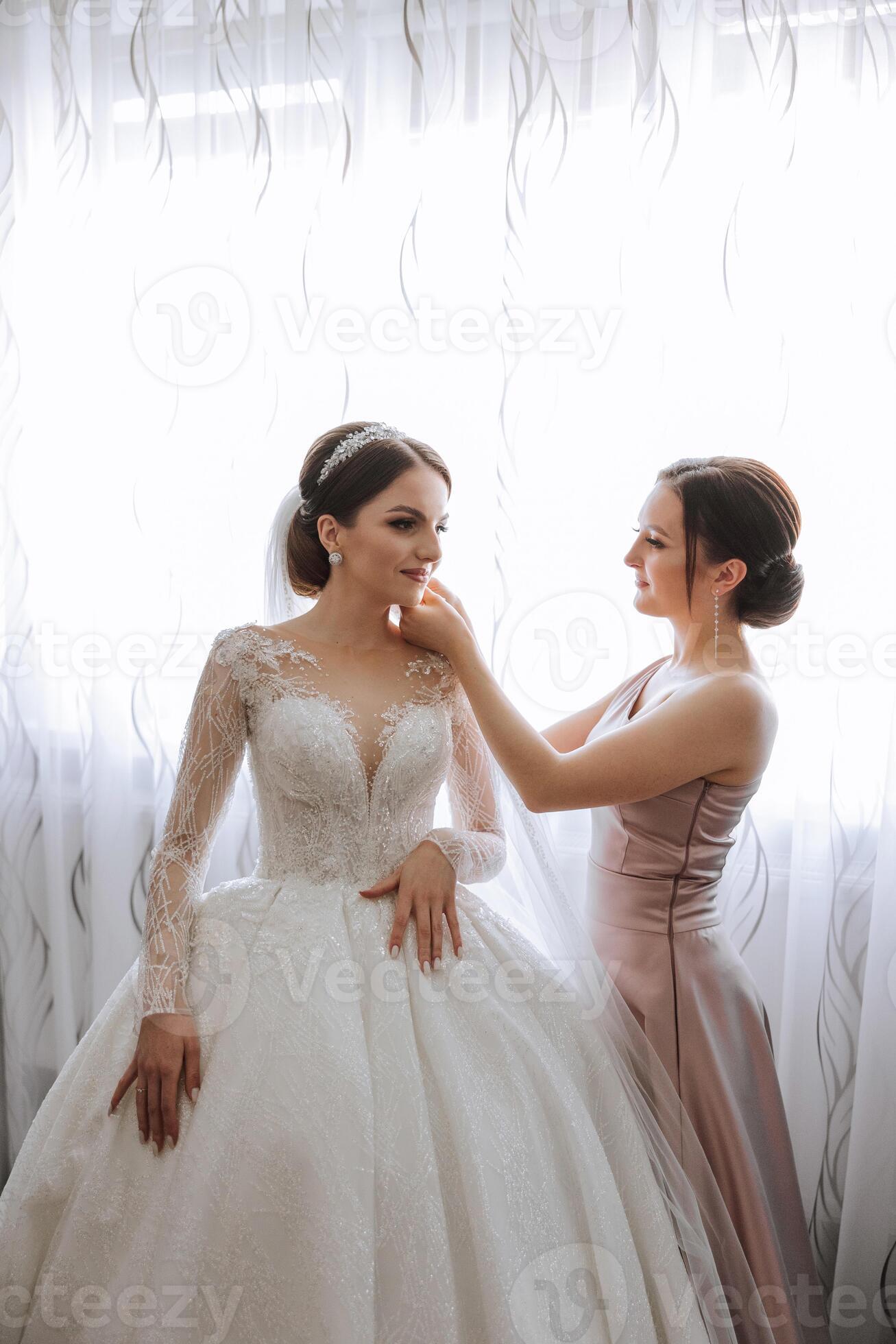 Premium Photo Morning of the bride The brides maid of honor helps the