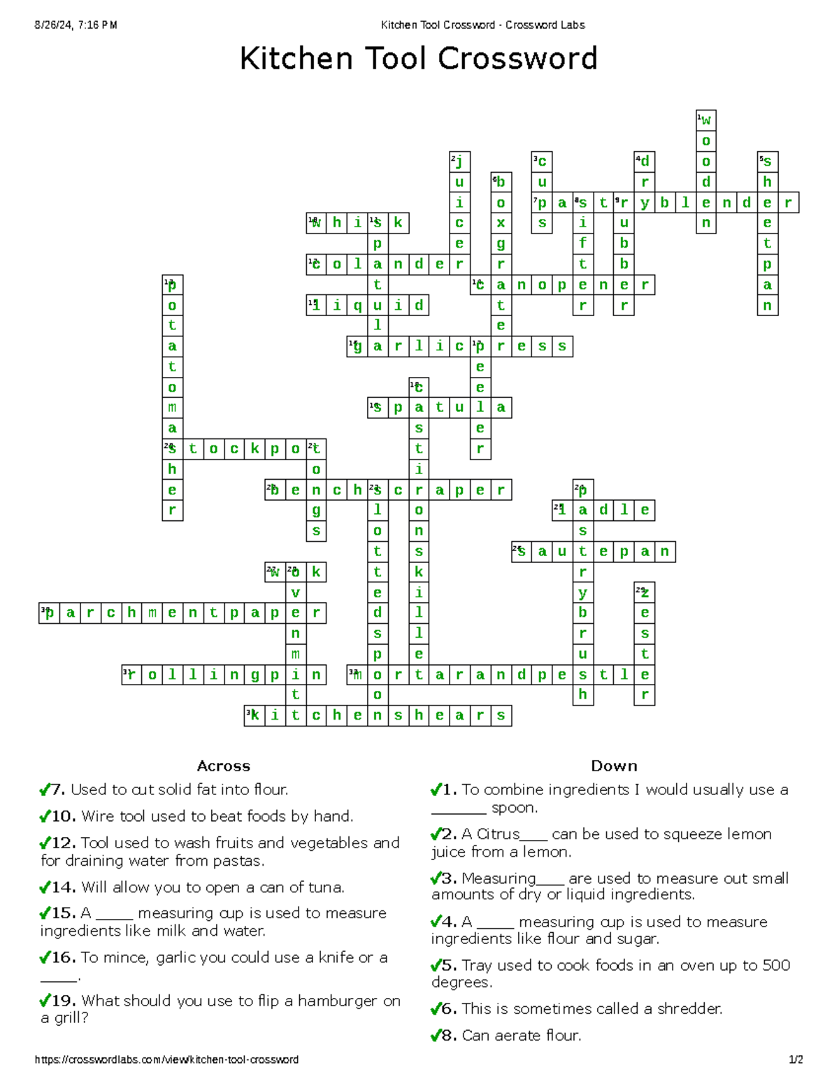 Kitchen Tool Crossword Crossword Labs Kitchen Tool Crossword Across