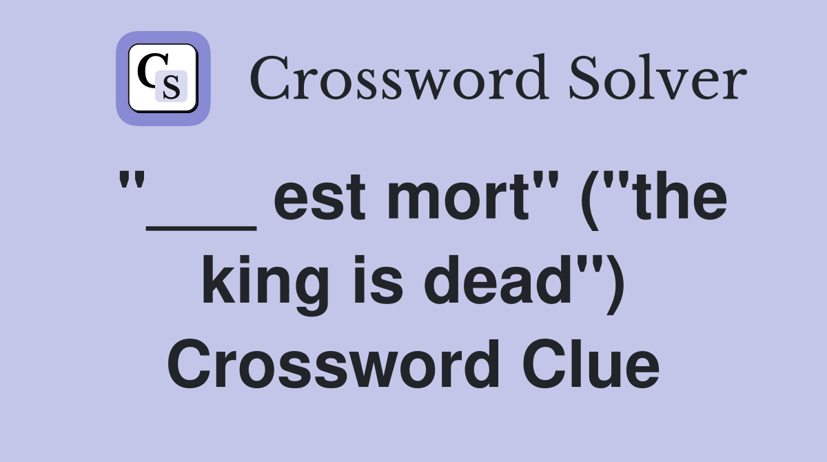 est mort quot ( quot the king is dead quot ) Crossword Clue Answers Crossword Solver