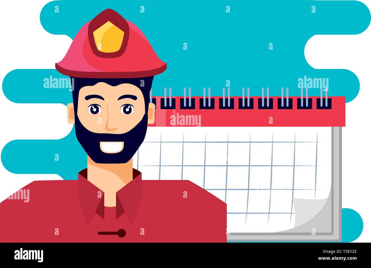 Firefighter Professional with Calendar Reminder Stock Illustration