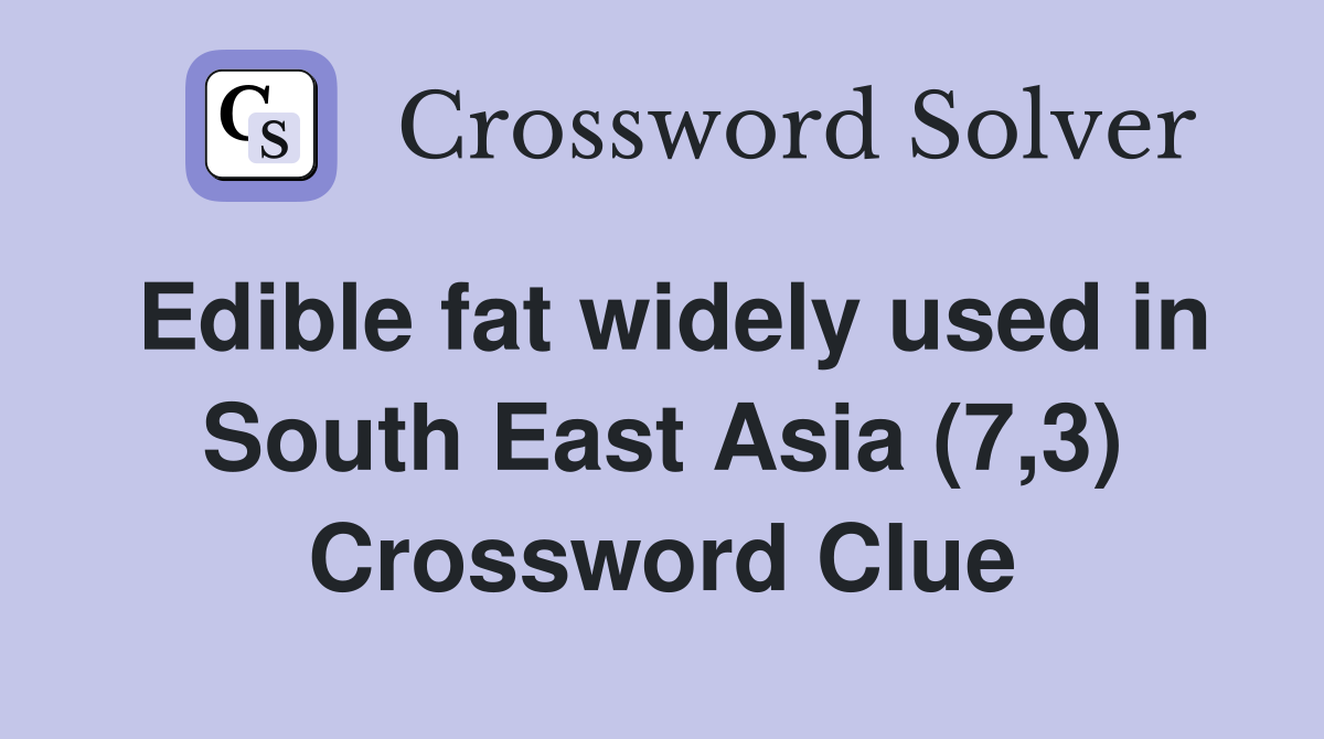 Edible fat widely used in South East Asia (7 3) Crossword Clue