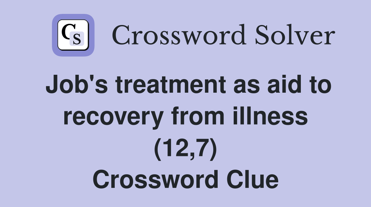 Job s treatment as aid to recovery from illness (12 7) Crossword Clue