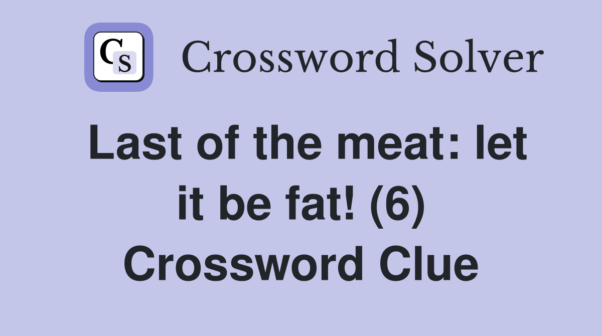 Last of the meat: let it be fat (6) Crossword Clue Answers