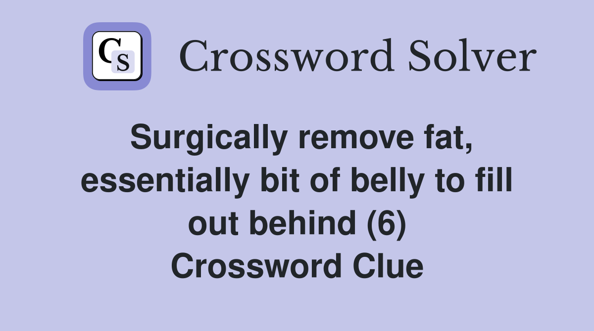 Here are some of the images for Fat Removal Job For Short Crossword Clue that we found in our website database.