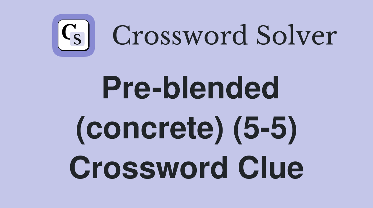 Pre blended (concrete) (5 5) Crossword Clue Answers Crossword Solver