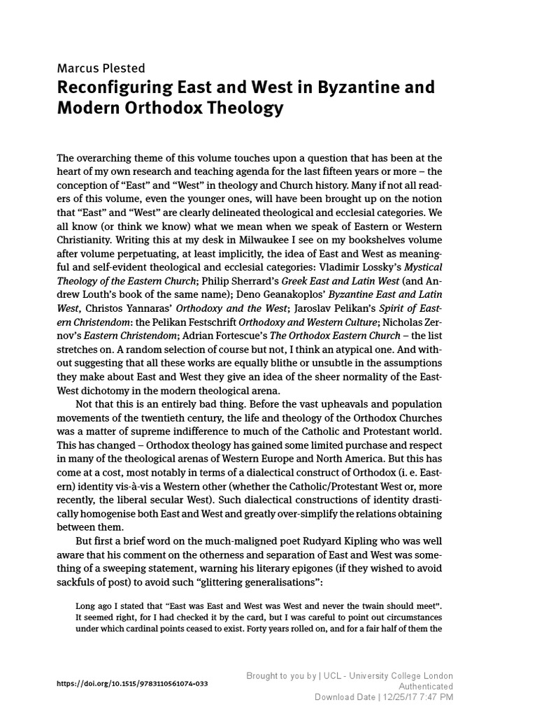 Plested M (2017) Reconfiguring East and West in Byzantine and