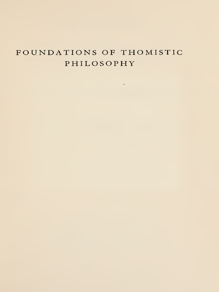 Foundations of Thomistic Philosophy Editiones Scholasticae
