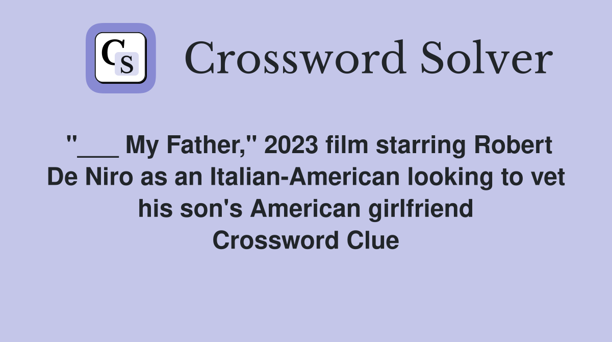 My Father quot 2023 film starring Robert De Niro as an Italian American