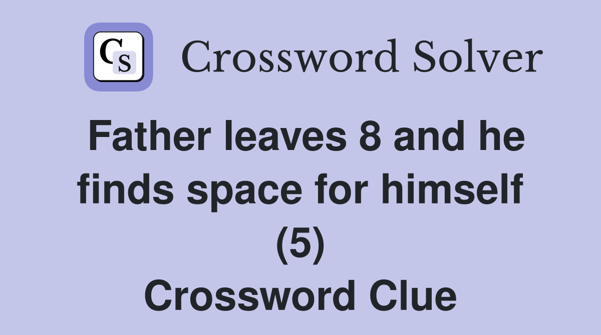 Father leaves 8 and he finds space for himself (5) Crossword Clue