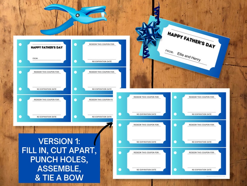 Fathers Day Coupons Blue Coupon book Printable coupon book Best