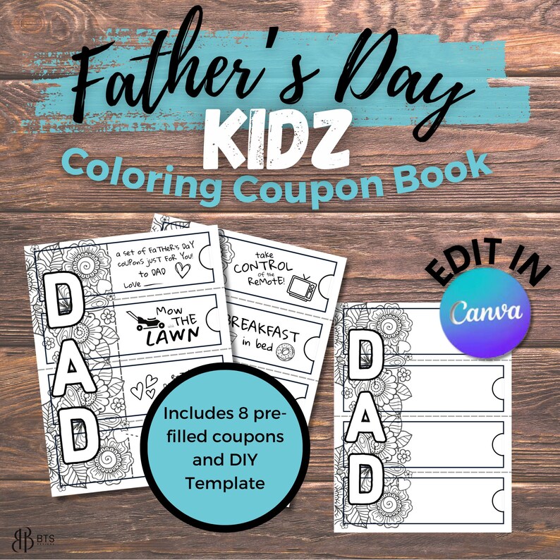 Fathers Day Coupon Book Editable Canva Template Printable Activity for