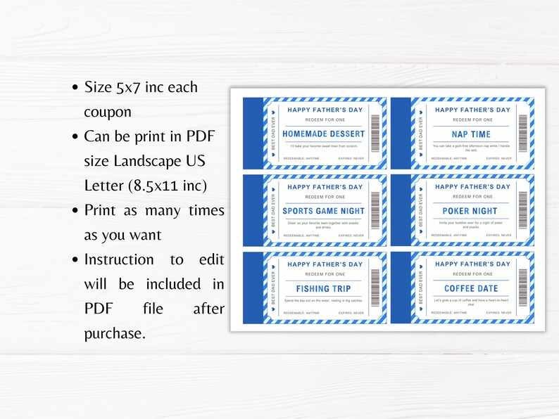 Editable Fathers Day Coupon Book Personalized Coupon Book for Dad