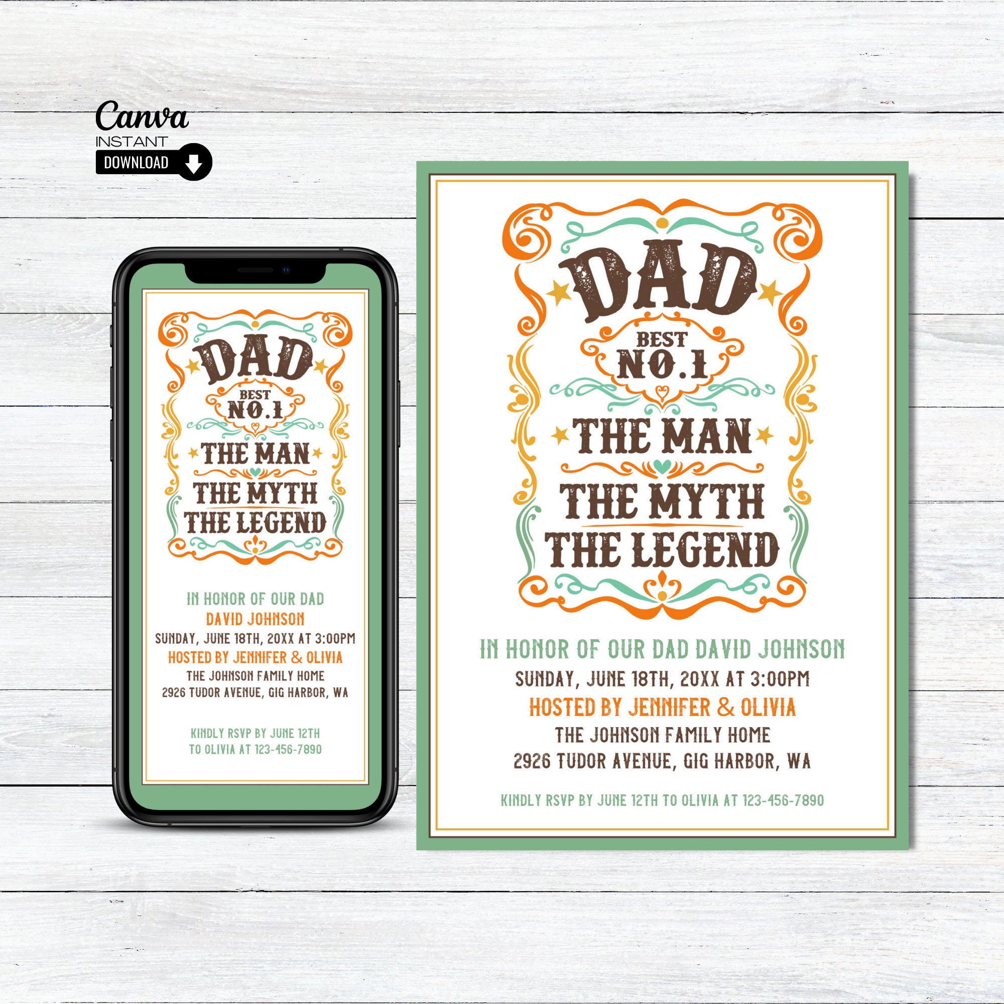 Digital Fathers Day Invitation Template Editable Whiskey Theme Happy