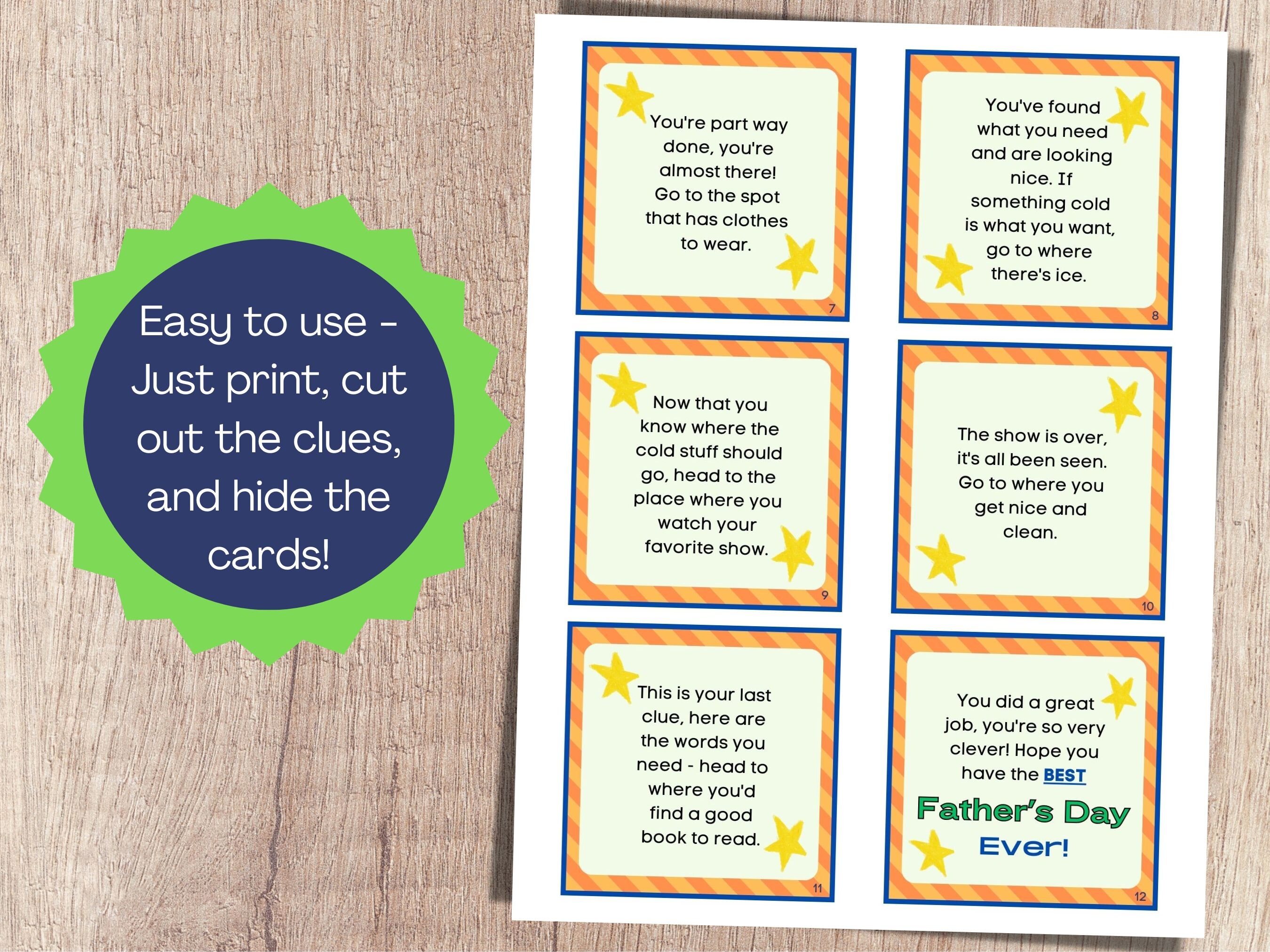 Printable Fathers Day Scavenger Hunt Fathers Day Treasure Hunt Clues