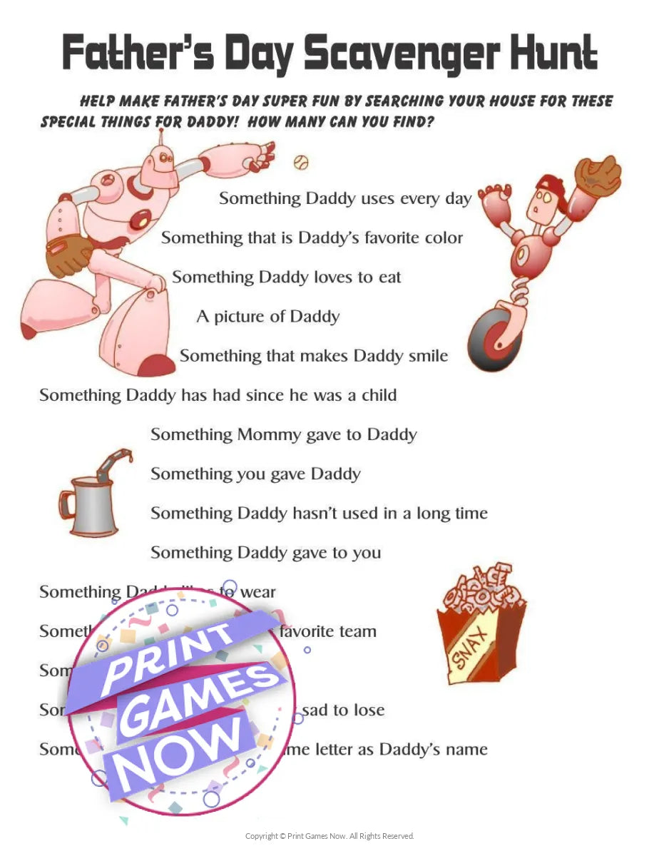 Printable Father #39 s Day Scavenger Hunt Party Game Print Games Now