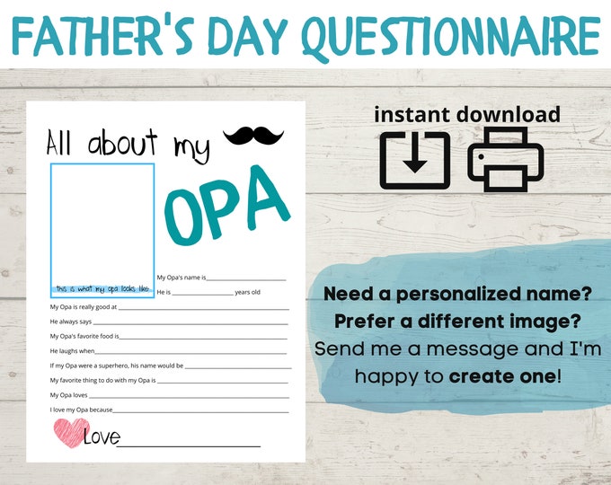 All About My Dad Questionaire: Fathers Day Survey Interview