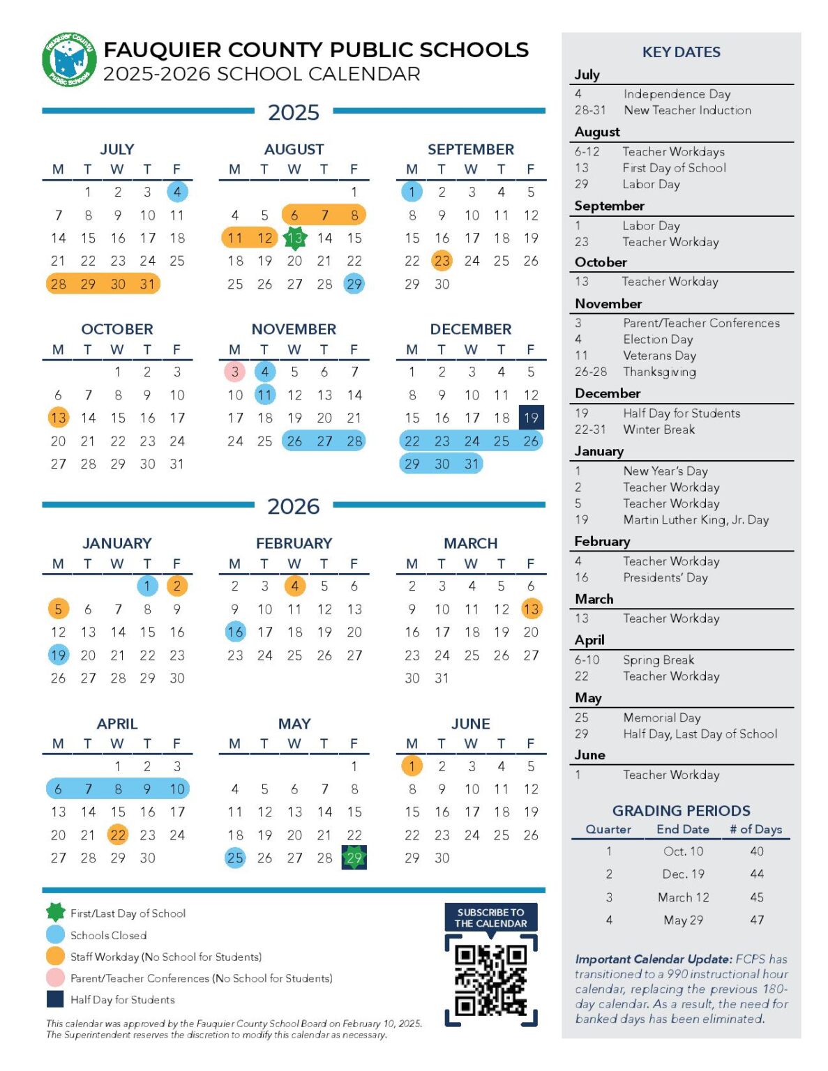 Fauquier County Public Schools Calendar 2025 2026 in PDF