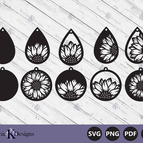 Sunflower Stacked Earrings Svg Teardrop Earrings Svg Faux Etsy