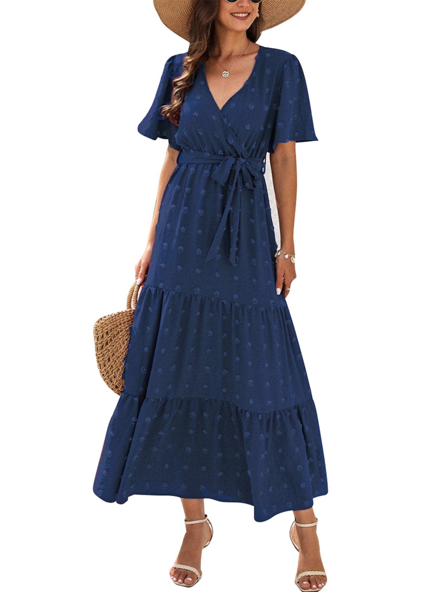 IWEMEK Faux Wrap Ruffle Sleeve Long Dress (Women #39 s) Walmart com