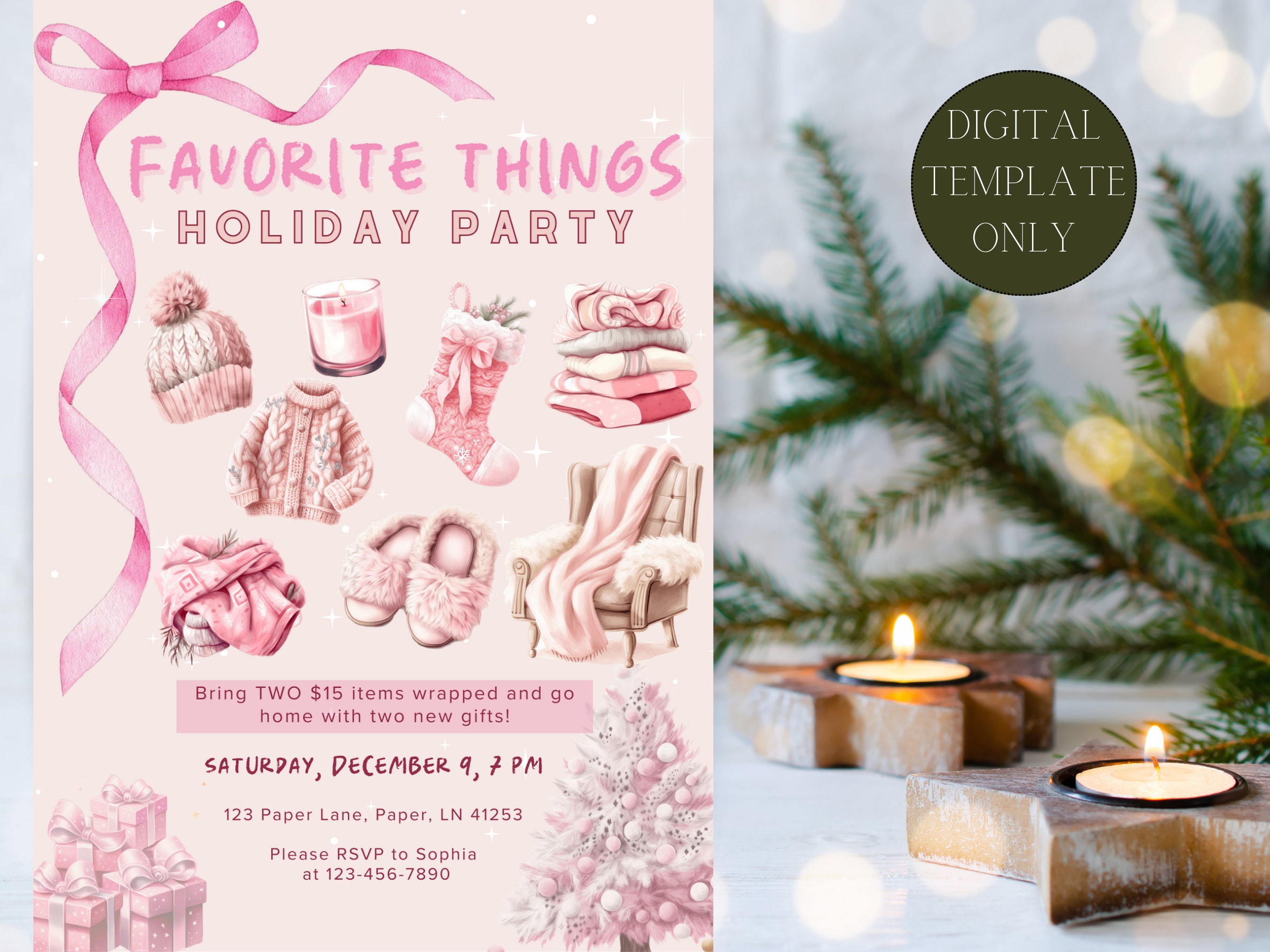 Favorite Things Party Invitation Template Holiday Girl s Night Instant