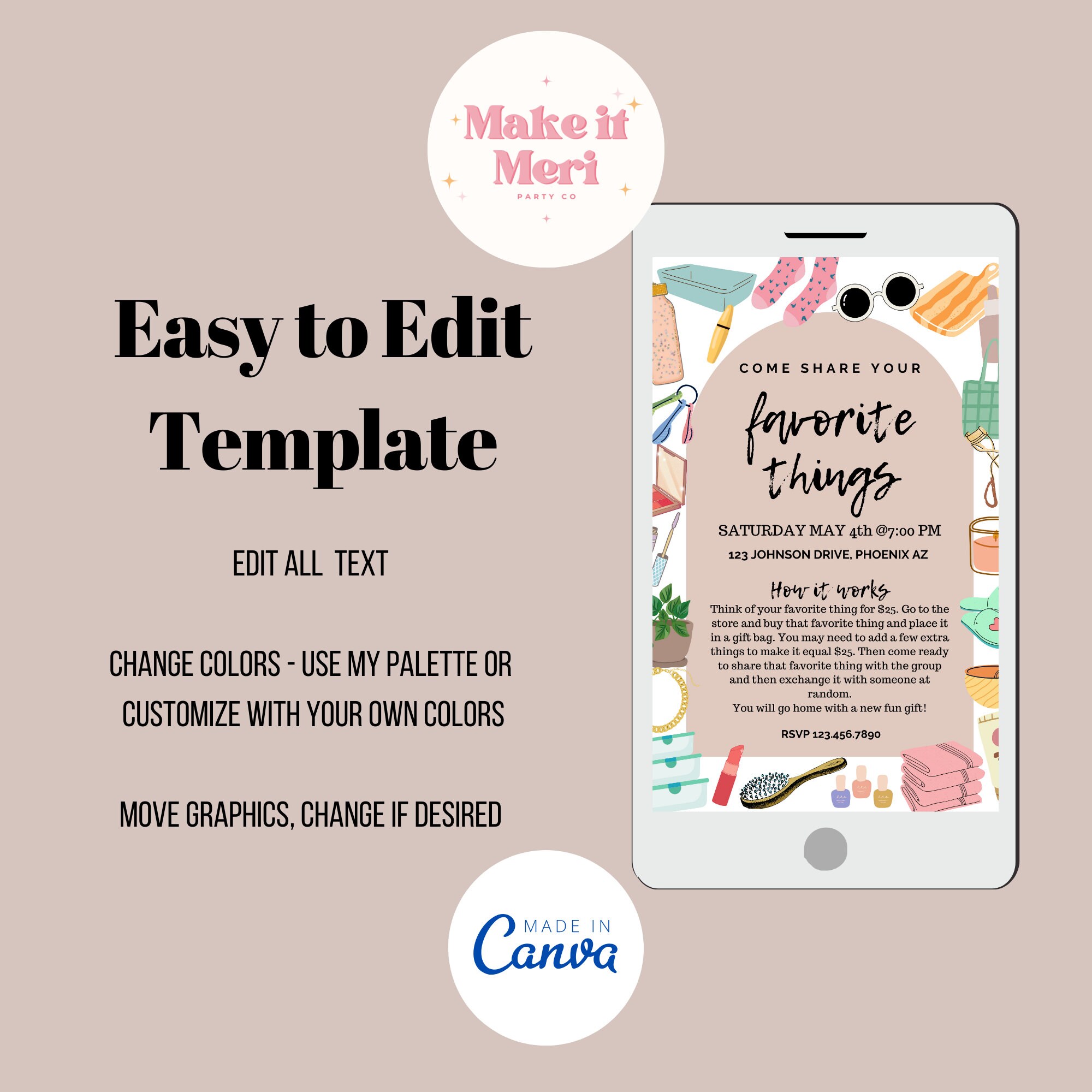 Favorite Things Party Invitation: Editable Printable (digital Download