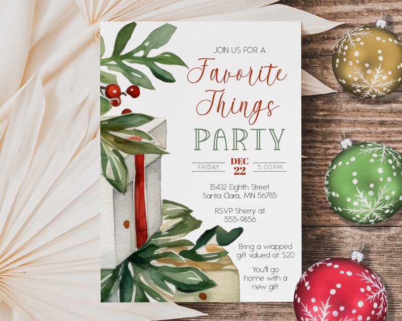 Favorite Things Party Invitation Watercolor Holiday Party Etsy