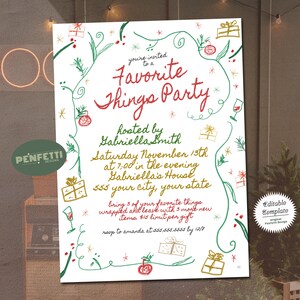 Editable Christmas Favorite things party invitation Printable template