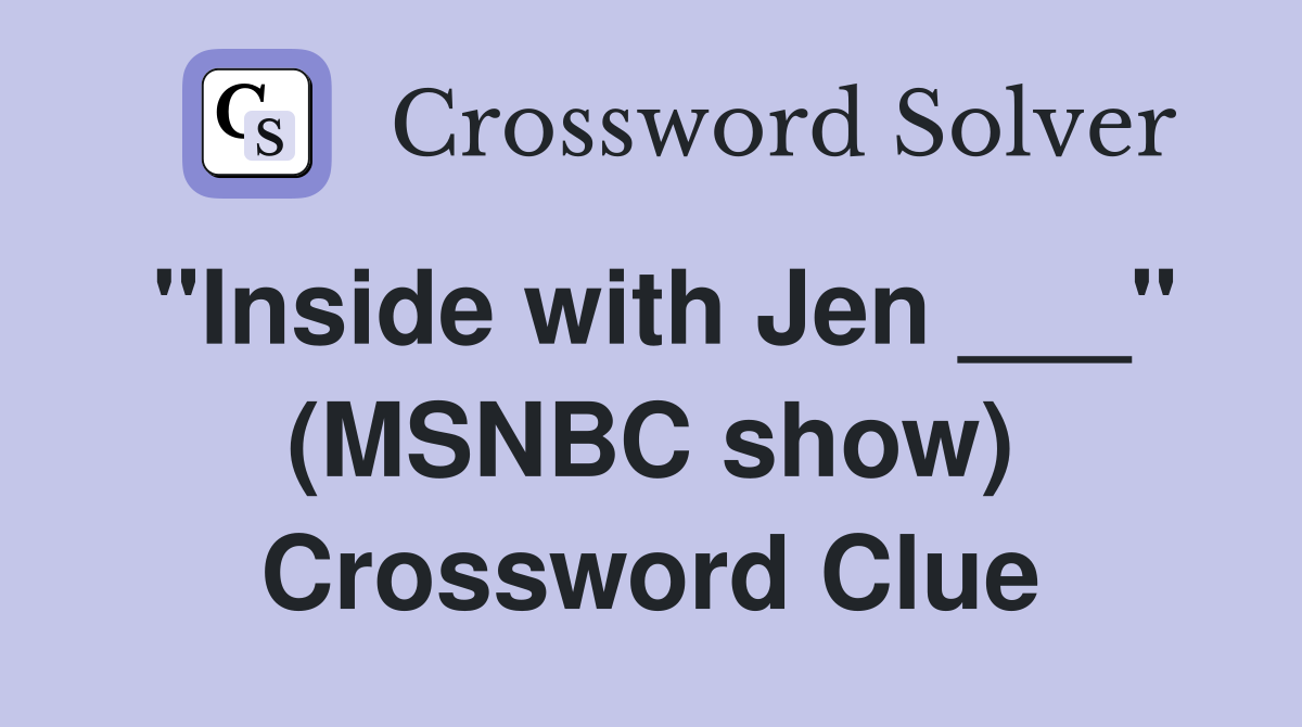 quot Inside with Jen quot (MSNBC show) Crossword Clue Answers Crossword